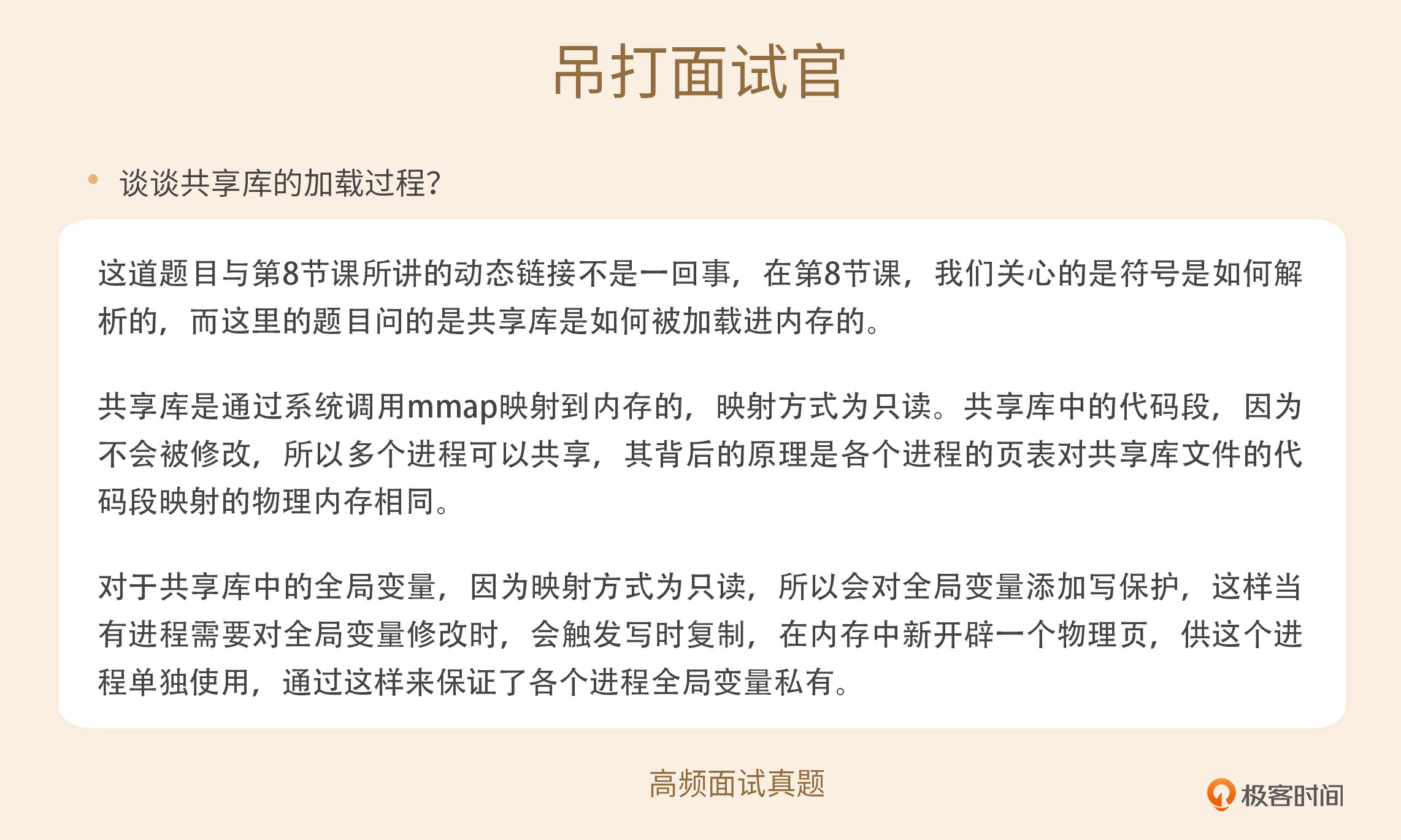 至此,我们才终于把mmap的核心原理分析清楚。第三个问题的答案也就很清楚了:mmap的功能之所以十分强大,主是因为操作系统综合使用写保护中断、缺页中断和文件机制来实现mmap的各种功能。