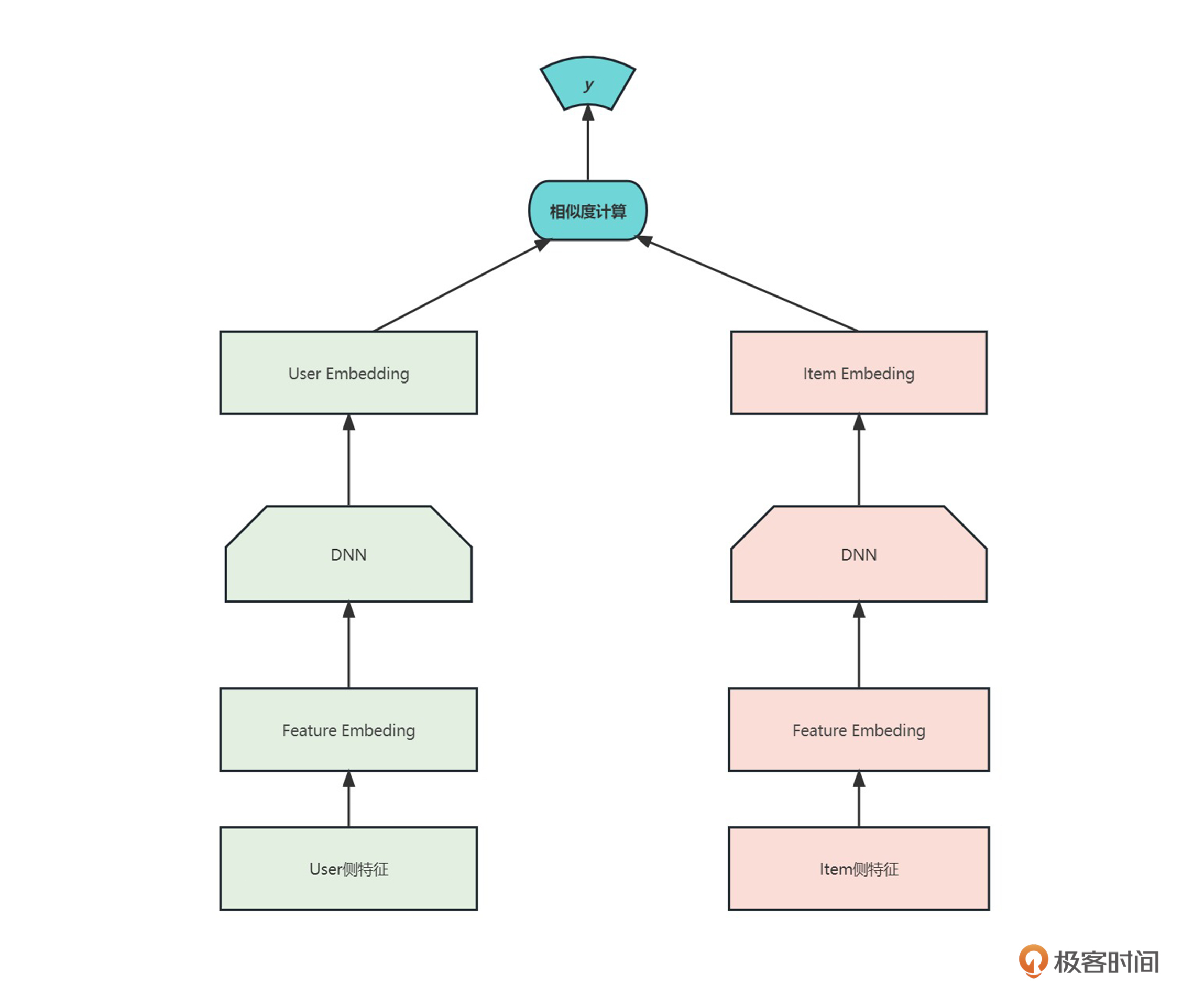 这个结构非常简单,主要包含两个部分:User塔和Item塔。