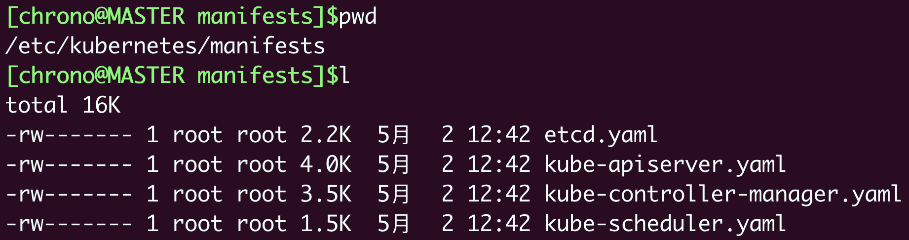 “静态Pod”的YAML文件默认都存放在节点的 /etc/kubernetes/manifests 目录下,它是Kubernetes的专用目录。