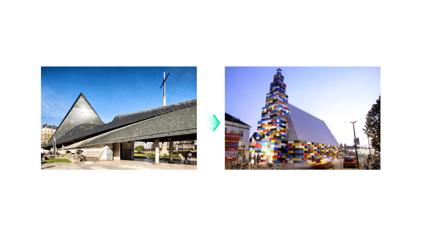 就好像这张图,以前要盖一个完整的楼,盖完一个才能再盖下一个,不同的人盖出来的很可能都不一样。现在我们有了现成的积木块,可以各种拆解复用,不仅方便快捷还保证了样式的统一性。