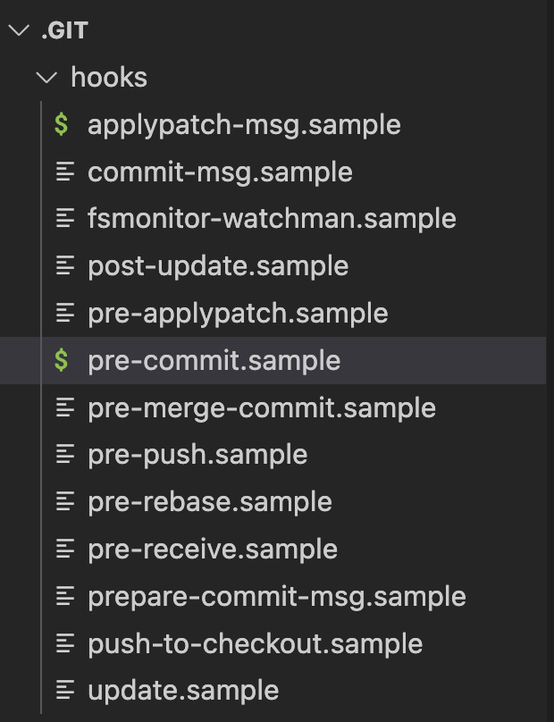 如果打开项目根目录下的 .git 文件夹,你会发现在 hooks 文件夹有这些文件: