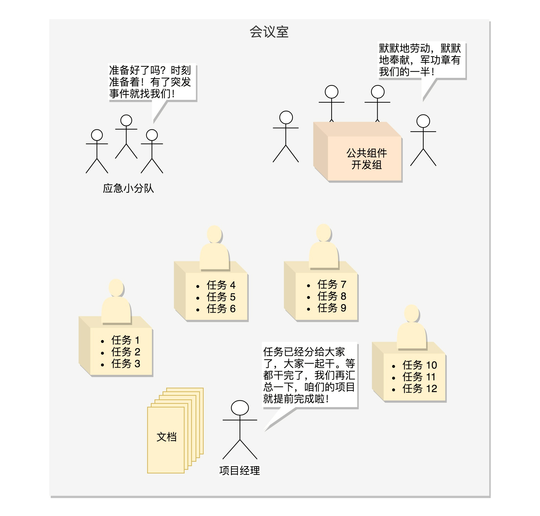 [root@deployer createthread]# ./a.out //招聘三个员工,一开始没有任务,大家睡大觉 No task now! Thread 3491833600 is waiting! No task now! Thread 3483440896 is waiting! No task now! Thread 3475048192 is waiting! //老板开始分配任务了,第一批任务就一个,告诉三个员工醒来抢任务 I am Boss, I assigned 1 tasks, I notify all coders! //员工一先发现有任务了,开始抢任务 Have task now! Thread 3491833600 is grabing the task ! //员工一抢到了任务A,开始干活 Thread 3491833600 has a task A now! //员工二也发现有任务了,开始抢任务,不好意思,就一个任务,让人家抢走了,接着等吧 Have task now! Thread 3483440896 is grabing the task ! No task now! Thread 3483440896 is waiting! //员工三也发现有任务了,开始抢任务,你比员工二还慢,接着等吧 Have task now! Thread 3475048192 is grabing the task ! No task now! Thread 3475048192 is waiting! //员工一把任务做完了,又没有任务了,接着等待 Thread 3491833600 finish the task A ! No task now! Thread 3491833600 is waiting! //老板又有新任务了,这次是两个任务,叫醒他们 I am Boss, I assigned 2 tasks, I notify all coders! //这次员工二比较积极,先开始抢,并且抢到了任务B Have task now! Thread 3483440896 is grabing the task ! Thread 3483440896 has a task B now! //这次员工三也聪明了,赶紧抢,要不然没有年终奖了,终于抢到了任务C Have task now! Thread 3475048192 is grabing the task ! Thread 3475048192 has a task C now! //员工一上次抢到了,这次抢的慢了,没有抢到,是不是飘了 Have task now! Thread 3491833600 is grabing the task ! No task now! Thread 3491833600 is waiting! //员工二做完了任务B,没有任务了,接着等待 Thread 3483440896 finish the task B ! No task now! Thread 3483440896 is waiting! //员工三做完了任务C,没有任务了,接着等待 Thread 3475048192 finish the task C ! No task now! Thread 3475048192 is waiting! //又来任务了,这次是三个任务,人人有份 I am Boss, I assigned 3 tasks, I notify all coders! //员工一抢到了任务D,员工二抢到了任务E,员工三抢到了任务F Have task now! Thread 3491833600 is grabing the task ! Thread 3491833600 has a task D now! Have task now! Thread 3483440896 is grabing the task ! Thread 3483440896 has a task E now! Have task now! Thread 3475048192 is grabing the task ! Thread 3475048192 has a task F now! //三个员工都完成了,然后都又开始等待 Thread 3491833600 finish the task D ! Thread 3483440896 finish the task E ! Thread 3475048192 finish the task F ! No task now! Thread 3491833600 is waiting! No task now! Thread 3483440896 is waiting! No task now! Thread 3475048192 is waiting! //公司活越来越多了,来了四个任务,赶紧干呀 I am Boss, I assigned 4 tasks, I notify all coders! //员工一抢到了任务G,员工二抢到了任务H,员工三抢到了任务I Have task now! Thread 3491833600 is grabing the task ! Thread 3491833600 has a task G now! Have task now! Thread 3483440896 is grabing the task ! Thread 3483440896 has a task H now! Have task now! Thread 3475048192 is grabing the task ! Thread 3475048192 has a task I now! //员工一和员工三先做完了,发现还有一个任务开始抢 Thread 3491833600 finish the task G ! Thread 3475048192 finish the task I ! //员工三没抢到,接着等 No task now! Thread 3475048192 is waiting! //员工一抢到了任务J,多做了一个任务 Thread 3491833600 has a task J now! //员工二这才把任务H做完,黄花菜都凉了,接着等待吧 Thread 3483440896 finish the task H ! No task now! Thread 3483440896 is waiting! //员工一做完了任务J,接着等待 Thread 3491833600 finish the task J ! No task now! Thread 3491833600 is waiting!