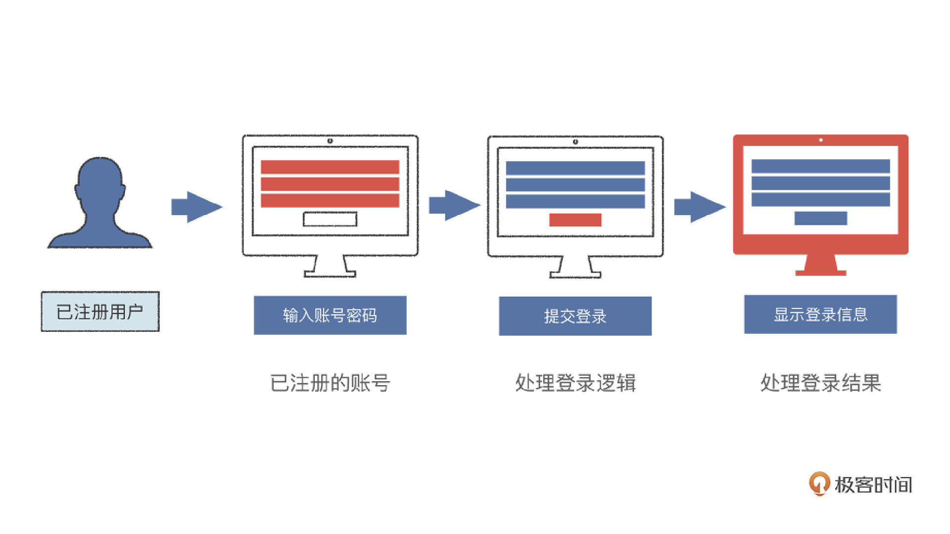 可以看出,用户登录的功能逻辑也可以分成三个步骤。