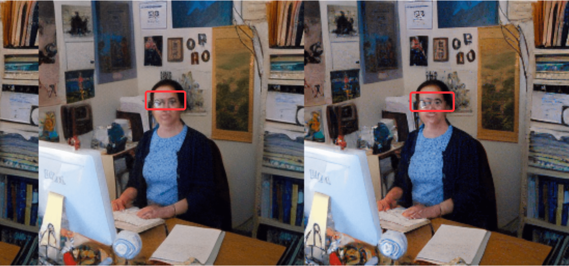 比如下面这个例子中,红框内人脸区域的重建效果明显变差。