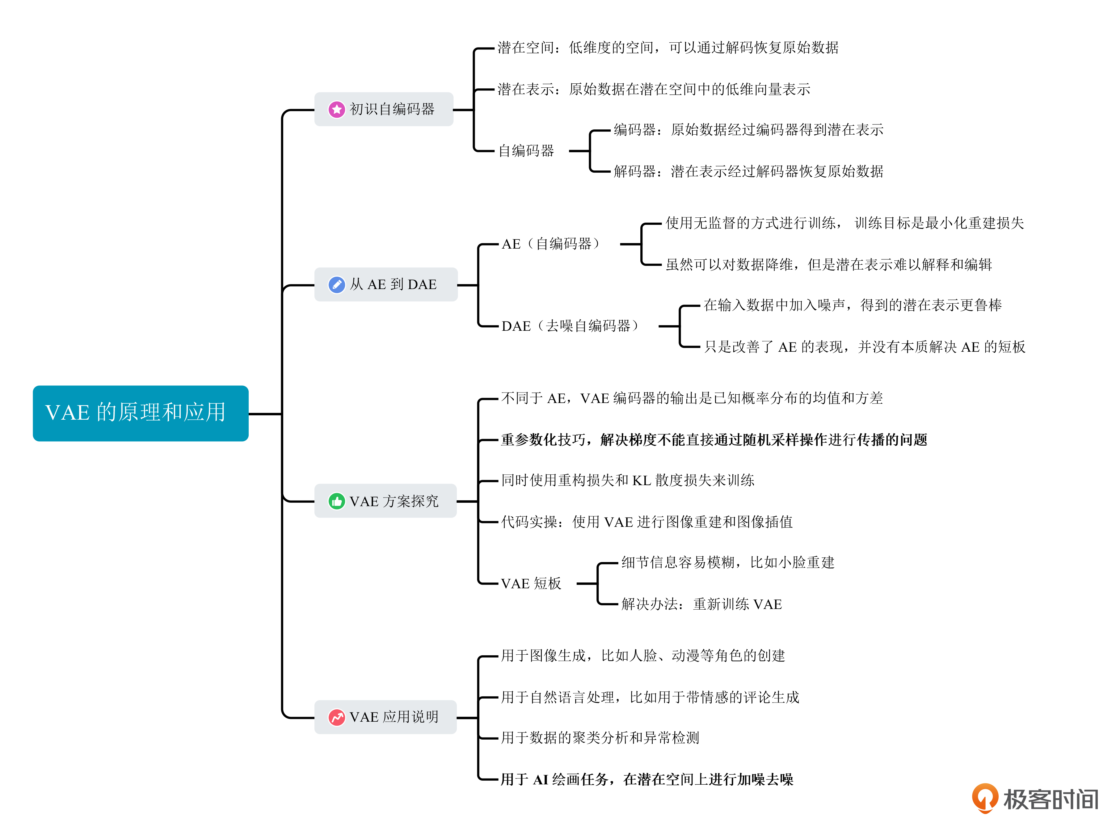 提到编码器和解码器,你也许会联想到我们在[第7讲]中学过的Transformer结构。这里我需要提醒你注意,尽管术语一样,但是VAE和Transformer中的编码器、解码器解决的是不同类型的问题,并具有不同的结构和原理。