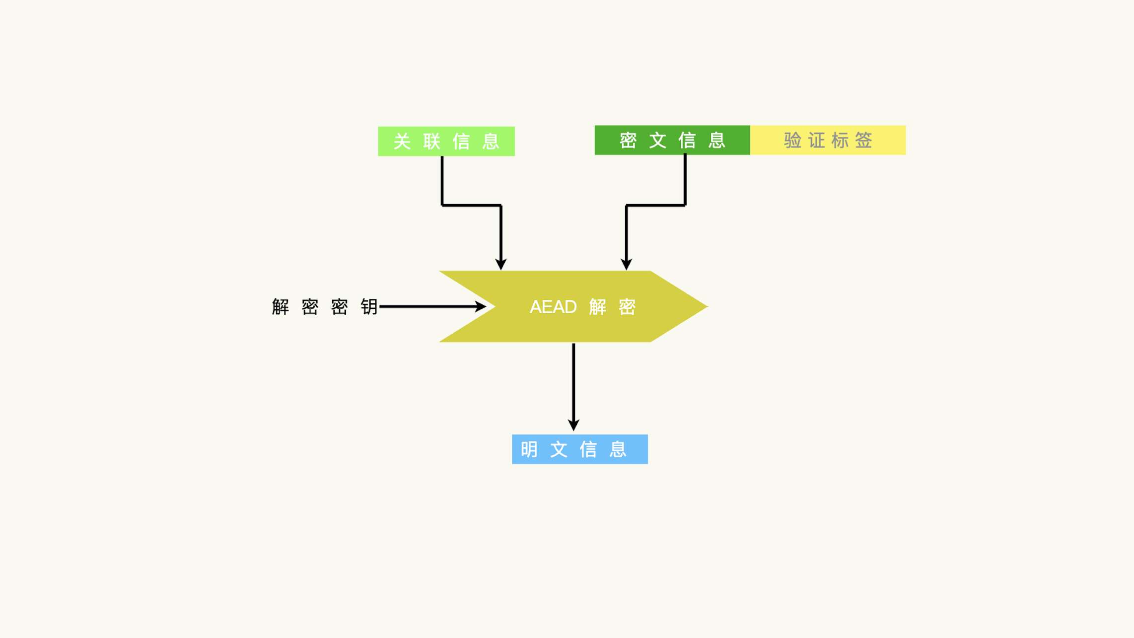 而输出的是明文信息。在解密过程中,如果密文信息或者关联信息验证失败,明文信息不会输出。换句话说,只有明文信息和关联信息的完整性都得到验证,才会有明文信息输出。