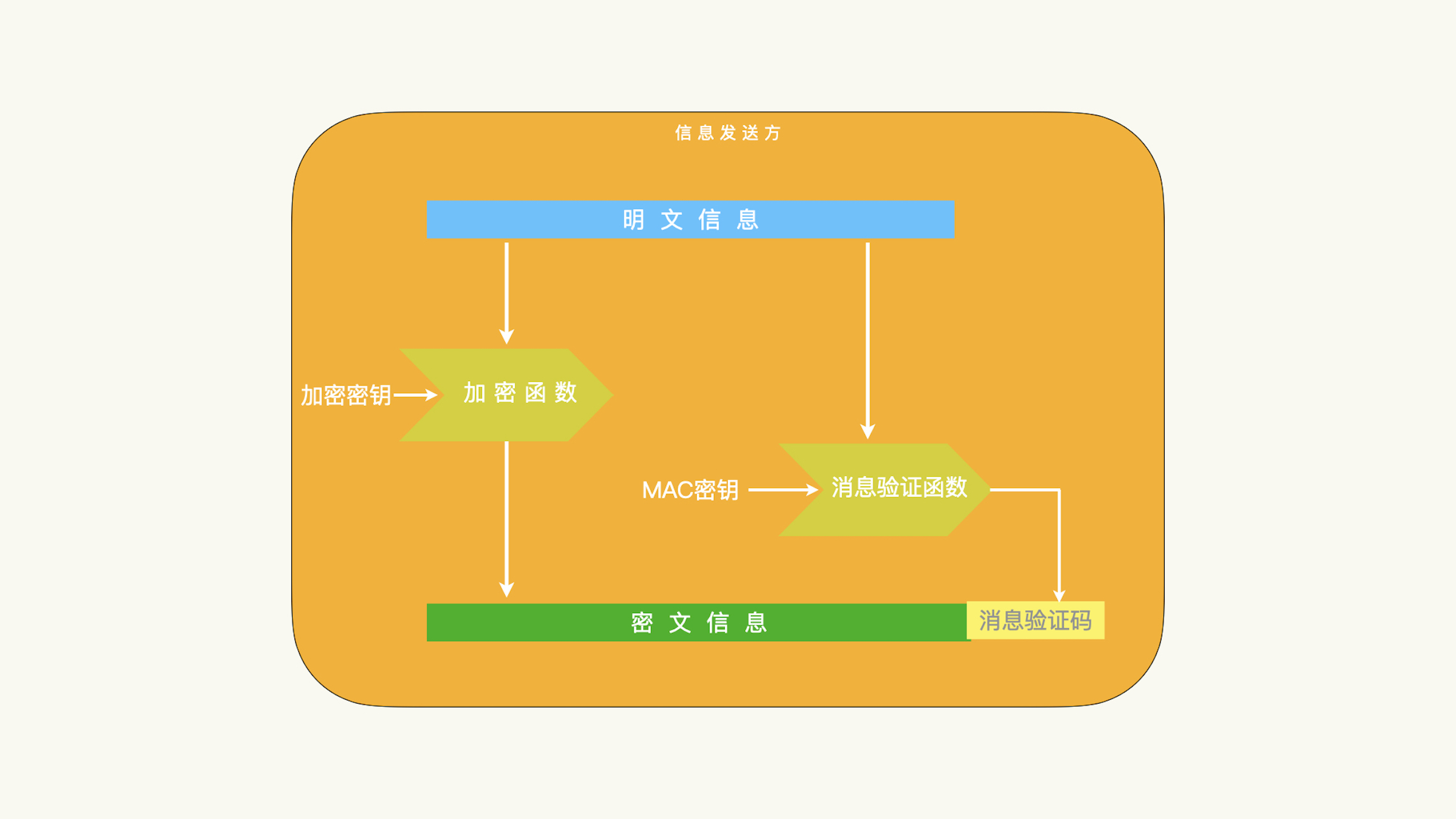想要保持信息的私密性,我们可以在信息传输之前,把明文数据加密成密文数据,然后传输密文数据。如果我们还想要保持信息的完整性,我们就要使用消息验证码。