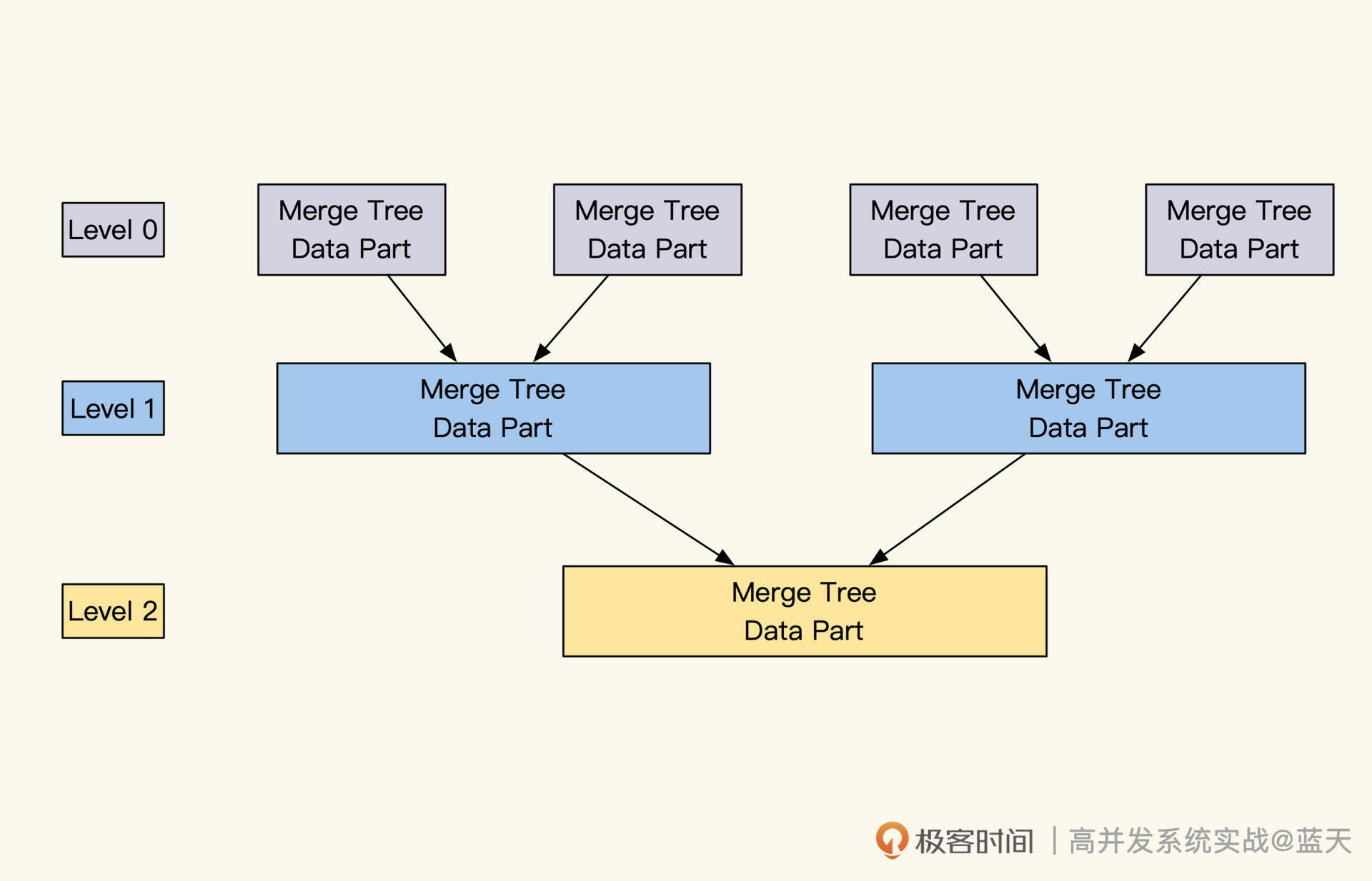 如上图所示,merge操作会分层进行,期间会减少要扫描的文件夹个数,对数据进行整理、删除、合并操作。你还需要注意,不同分区无法合并,所以如果我们想提高一个表的写性能,多分几个分区会有帮助。