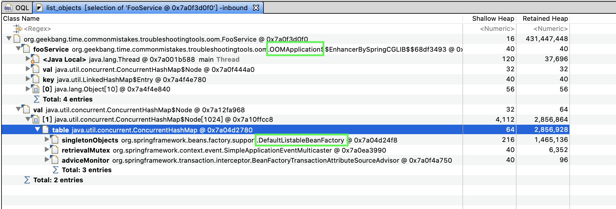 - 第一处是,OOMApplication使用了FooService,这个我们已经知道了。