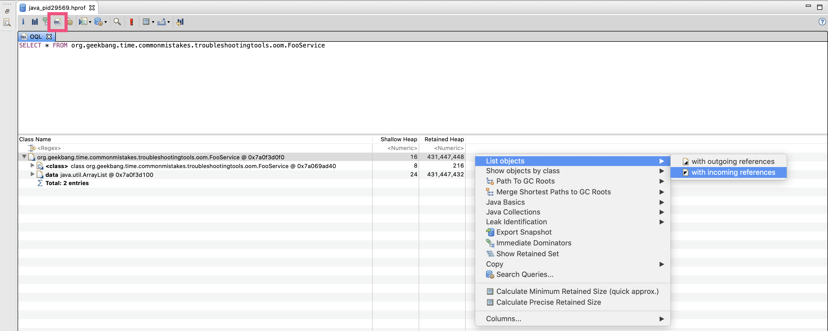 1 | SELECT * FROM org.geekbang.time.commonmistakes.troubleshootingtools.oom.FooService |