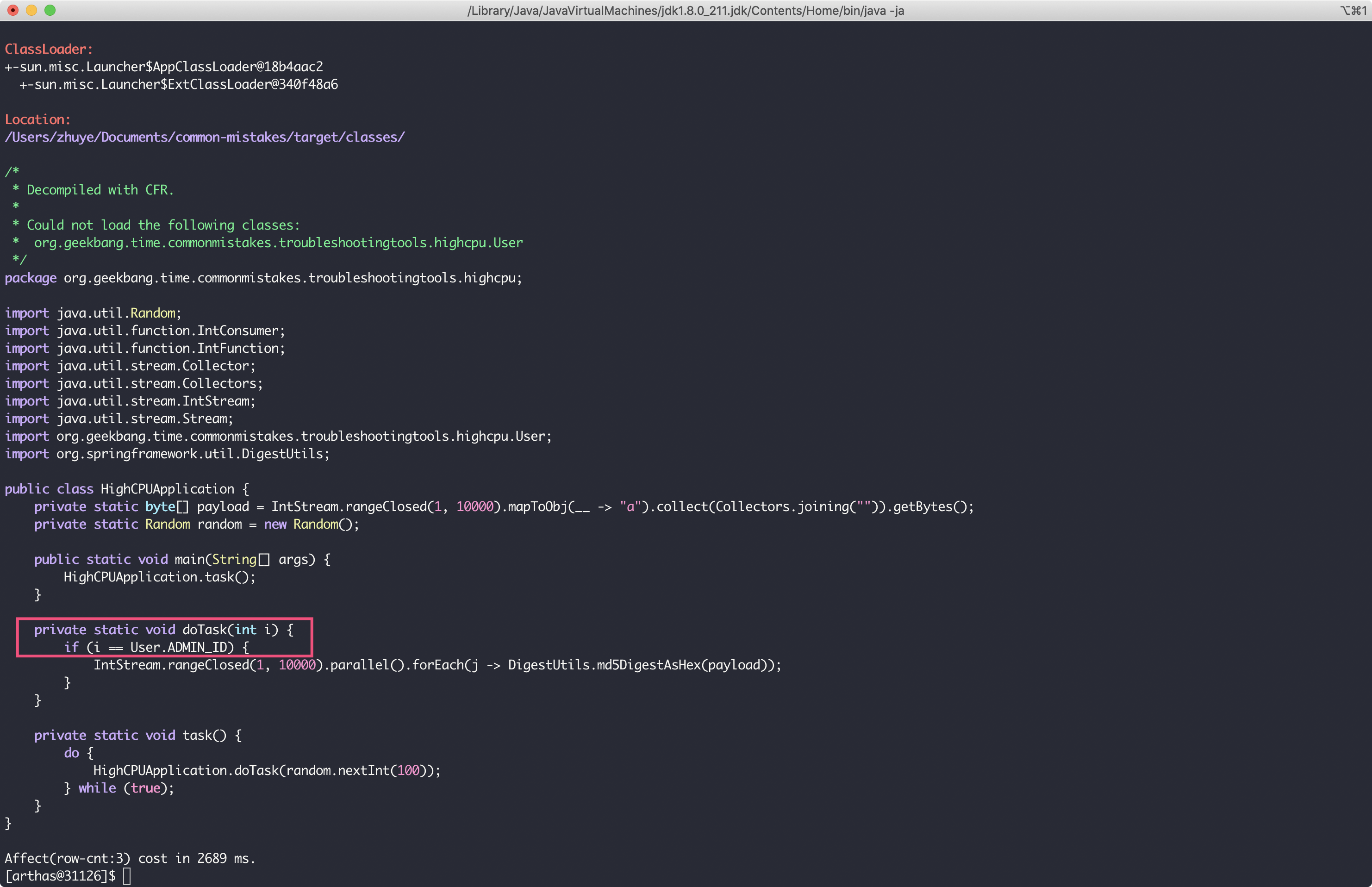 1 | jad org.geekbang.time.commonmistakes.troubleshootingtools.highcpu.HighCPUApplication |