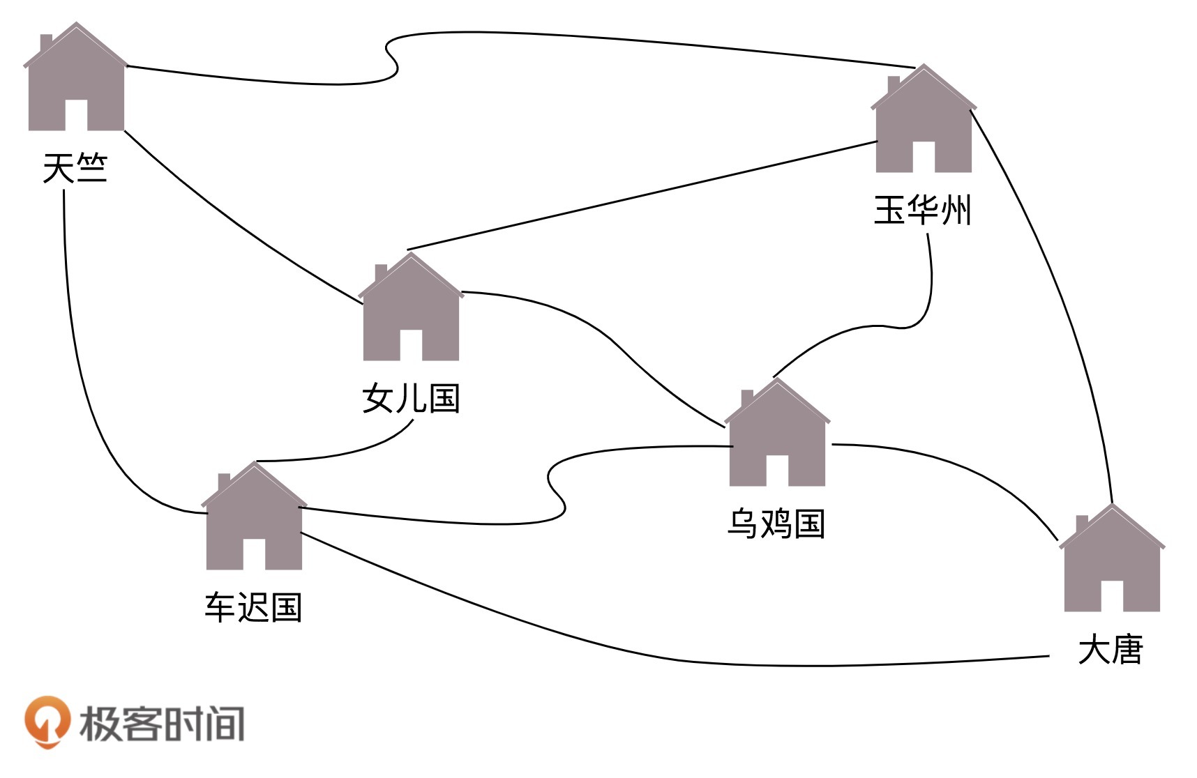 无论是一个国家内部,还是国家之间,我们都可以将复杂的路径,抽象为一种叫作图的数据结构。至于唐僧西行取经,肯定想走的路越少越好,道路越短越好,因而这就转化成为如何在途中找到最短路径的问题。