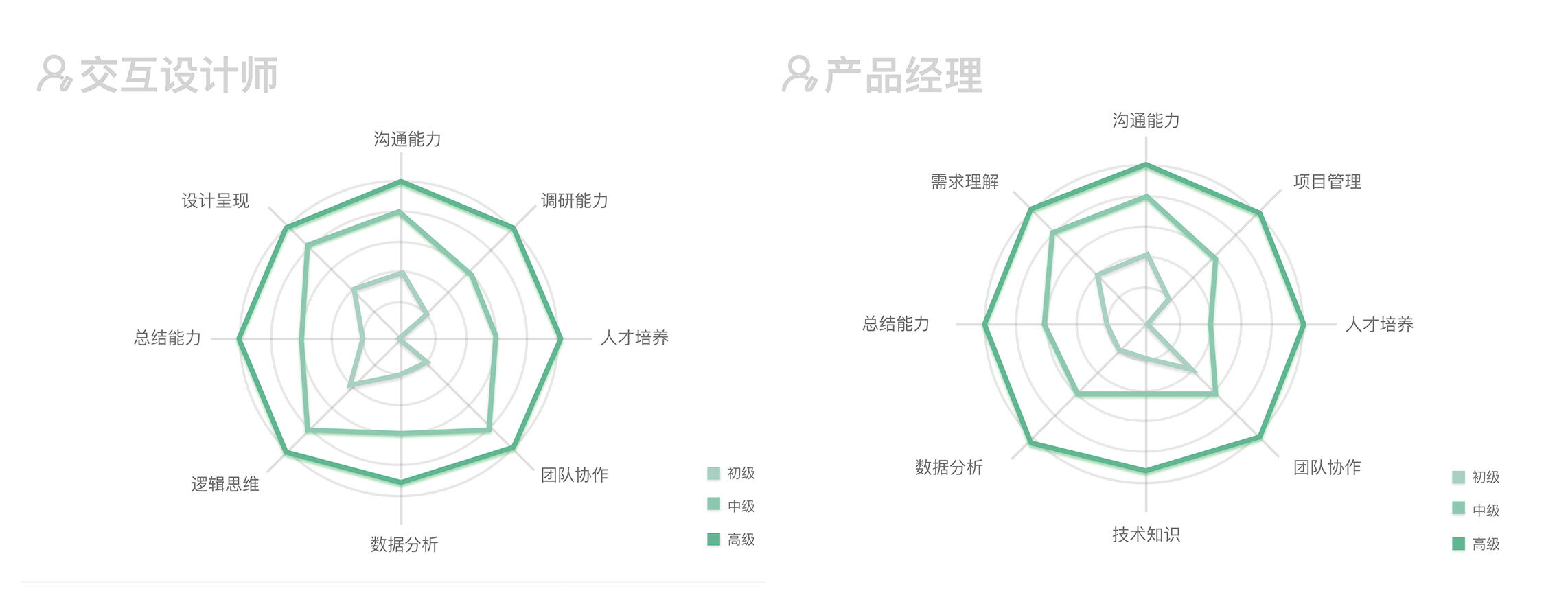通过两个岗位的能力雷达图,咱们就可以明显地看到各自能力项是不同的,既然要求的核心能力不同,咱们就彼此在自己职能能力项里,把核心能力打磨好,做好个人能力护城河,它不香吗?