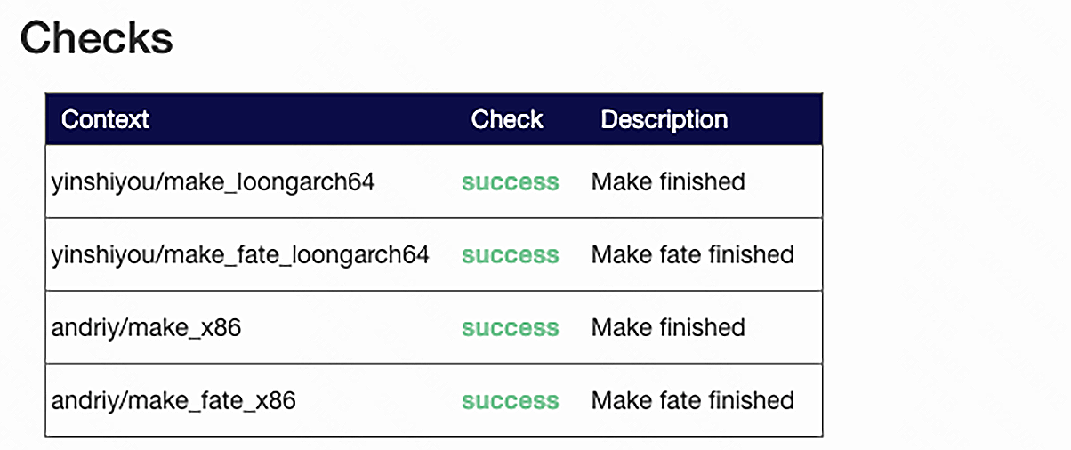 而FFmpeg的邮件列表和其他工具基本上是联动的,如果我们发一个patch想确认是否正常的话,FFmpeg还提供了个patchwork工具,在patchwork里也可以看到你的patch是否正常。因为FFmpeg支持的平台比较多,包括我们的龙芯,所以平台兼容性也在考虑范围之内。