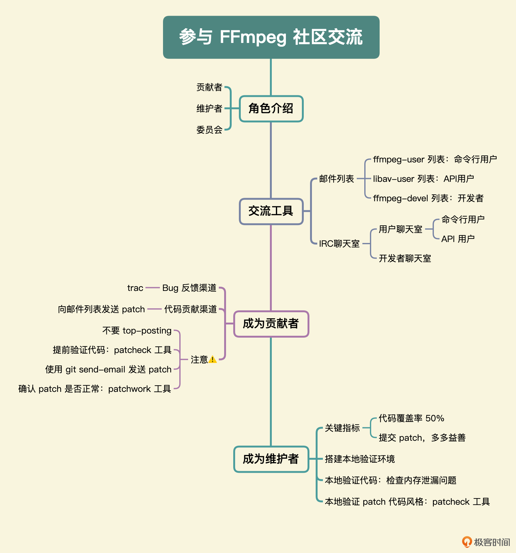 忽略问题或者想办法绕过去并不是一个好的选择,其实我们是可以通过参与FFmpeg社区的交流,来解决这些问题的。社区里有来自世界各地的专业能力很强的人,通过和他们交流,不仅可以解决工作中遇到的问题,还能够从交流中发现很多FFmpeg黑科技,拓宽自己的视野。