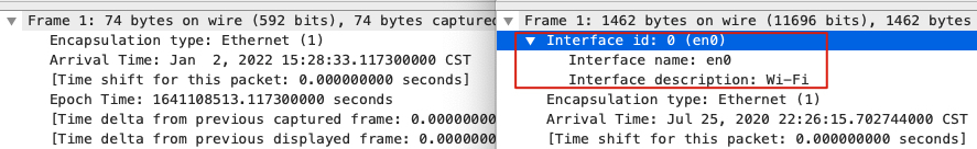 我们可以看到,上图中右边的pcapng格式是包含报文的网络接口信息的,而左边的pcap就没有。