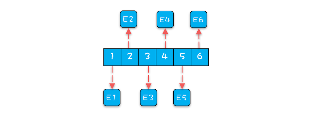 Disruptor内部RingBuffer的结构可以简化成下图,那问题来了,数组中所有元素内存地址连续能提升性能吗?能!为什么呢?因为消费者线程在消费的时候,是遵循空间局部性原理的,消费完第1个元素,很快就会消费第2个元素;当消费第1个元素E1的时候,CPU会把内存中E1后面的数据也加载进Cache,如果E1和E2在内存中的地址是连续的,那么E2也就会被加载进Cache中,然后当消费第2个元素的时候,由于E2已经在Cache中了,所以就不需要从内存中加载了,这样就能大大提升性能。