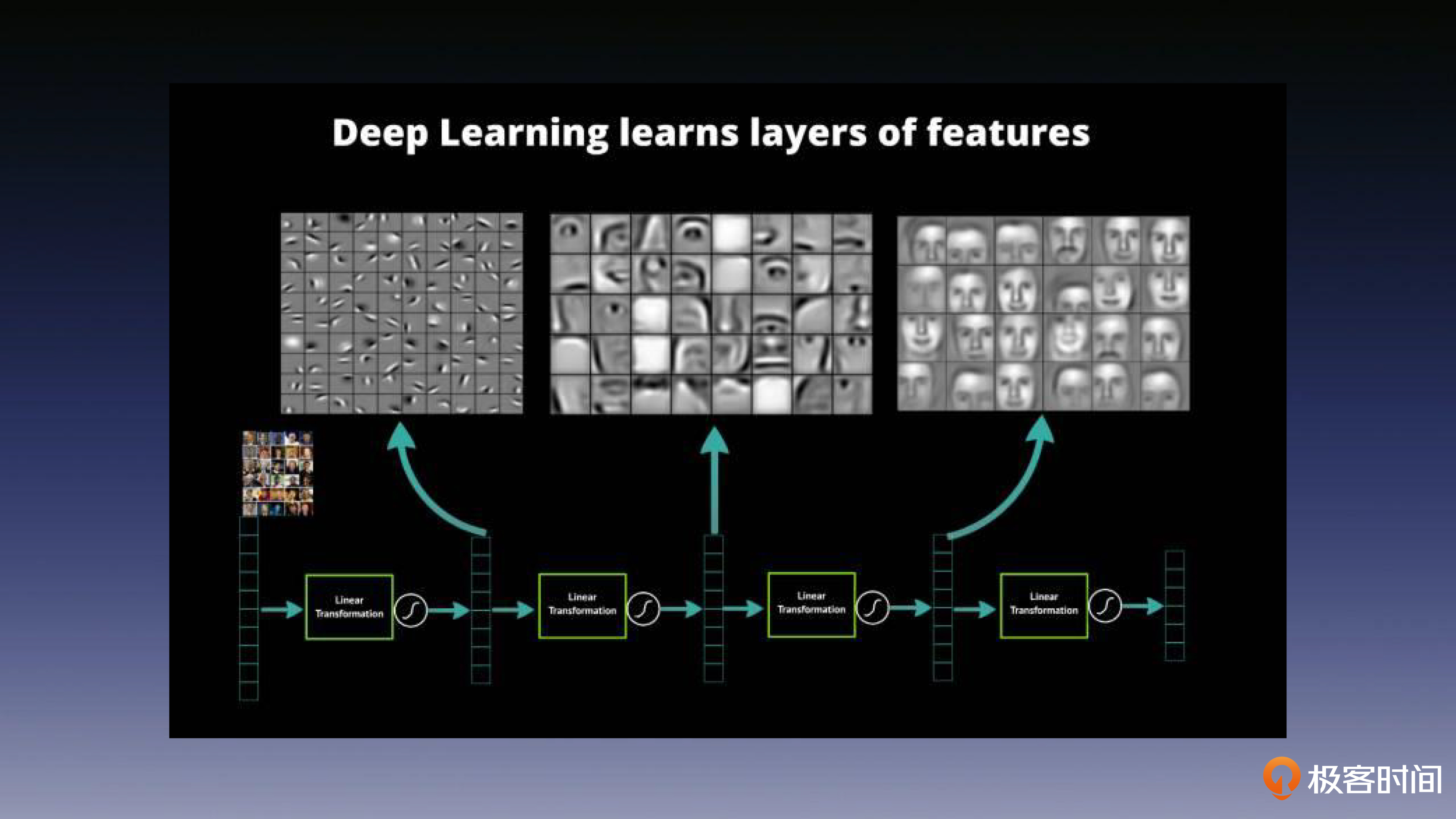 - 最上层则会出现和我们的目标分类任务最相关的一些实体,在这个例子中就是人脸的内容。