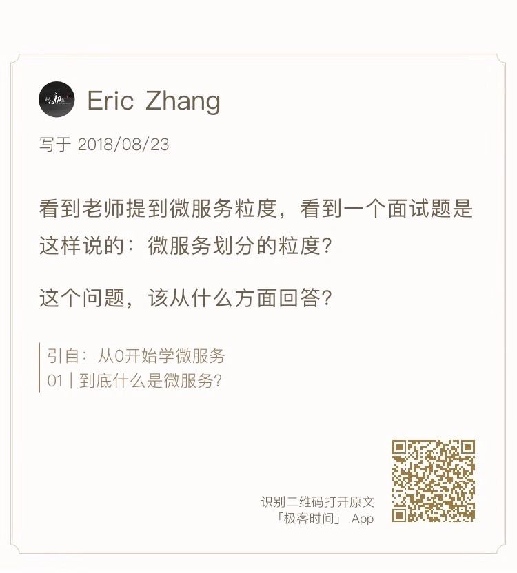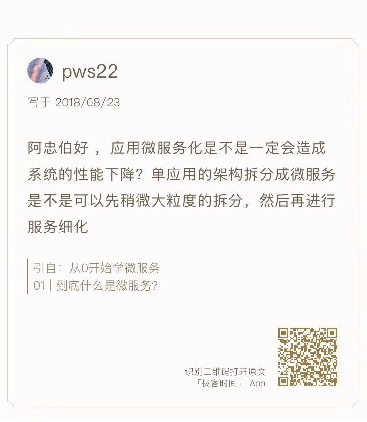今天的答疑就到这里啦,欢迎你在留言区写下自己学习、实践微服务的心得和体会,与我和其他同学一起讨论。你也可以点击“请朋友读”,把今天的内容分享给好友,或许这篇文章可以帮到他。