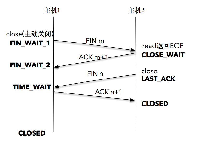 最终,主动关闭方接收到对方的FIN包,并确认这个FIN包。主动关闭方进入TIME_WAIT状态,而接收到ACK的被动关闭方则进入CLOSED状态。经过2MSL时间之后,主动关闭方也进入CLOSED状态。