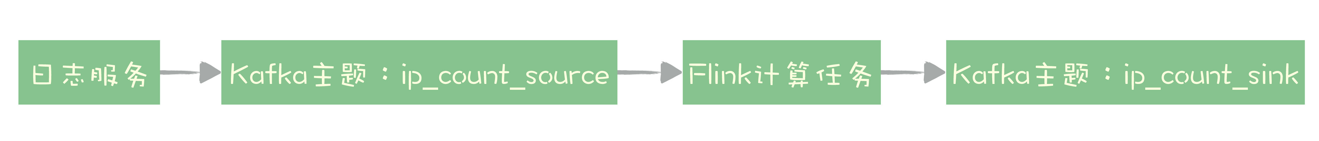 日志服务将日志数据发送到Kafka的主题ip_count_source,计算任务消费这个主题的数据作为数据源,计算结果会被写入到Kafka的主题ip_count_sink中。