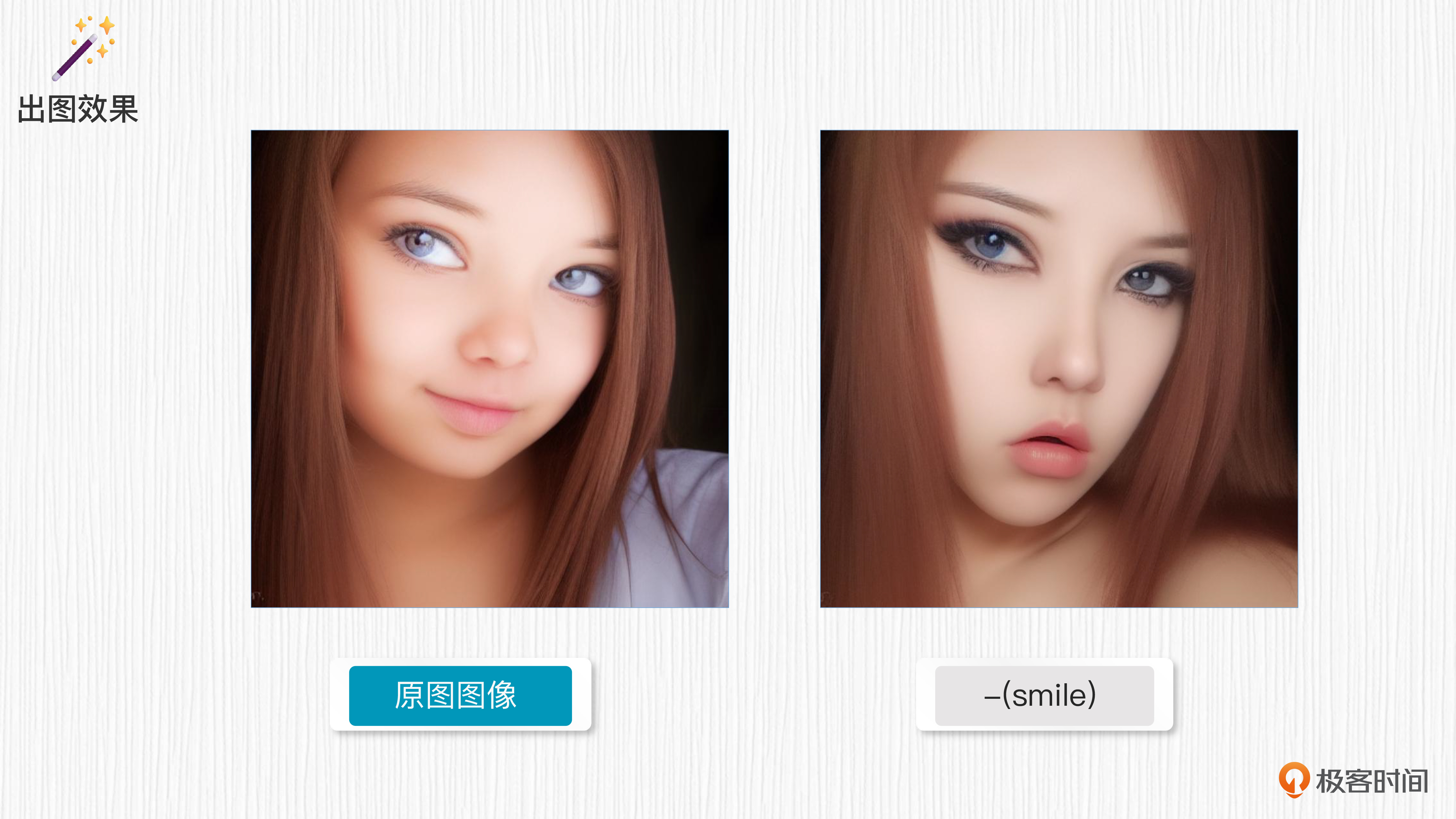 通过在negative prompt区域添加不想出现的信息,比如在此处添加 “smile(微笑)”,就可以去掉笑容。生成模型会参考这些负面prompt信息,尽量避免生成带有笑容的图像。这样的处理可以帮助控制图像生成的特定要素,使其符合特定需求或风格。