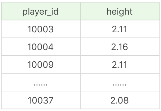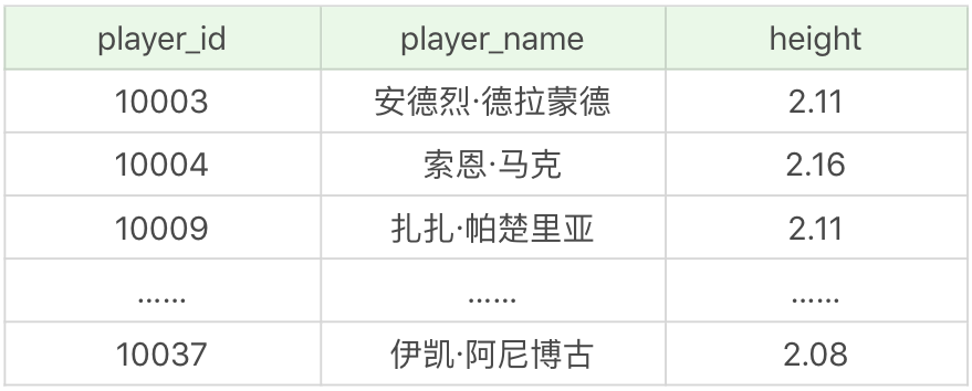 我们以NBA球员数据表为例。我们想要查询比NBA球员平均身高高的球员都有哪些,显示他们的球员ID和身高。假设我们给这个视图起个名字player_above_avg_height,那么创建视图可以写成: