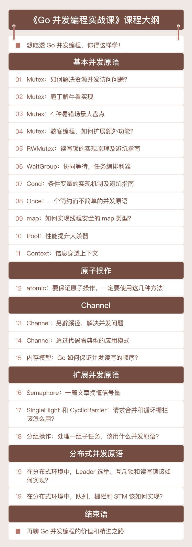- 在面对并发难题时,感觉无从下手,不知道该用什么并发原语来解决问题。