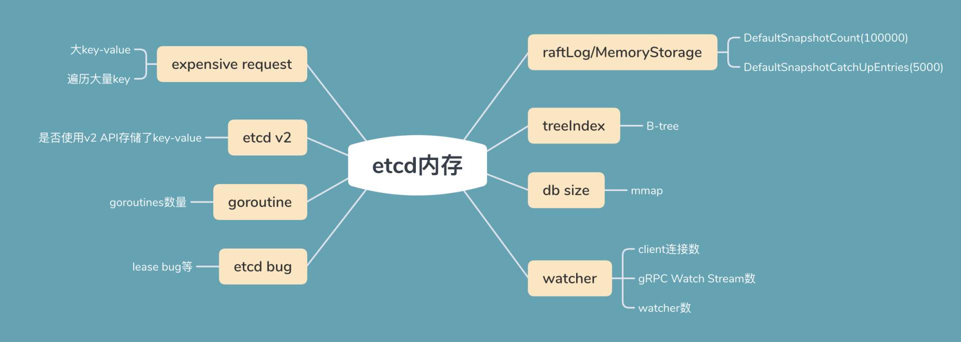 以上措施都有其合理性。但作为团队内etcd高手的你,在集群稳定性还不影响业务的前提下,能否先通过内存异常的现场,结合etcd的读写流程、各核心模块中可能会使用较多内存的关键数据结构,推测出内存异常的可能原因?