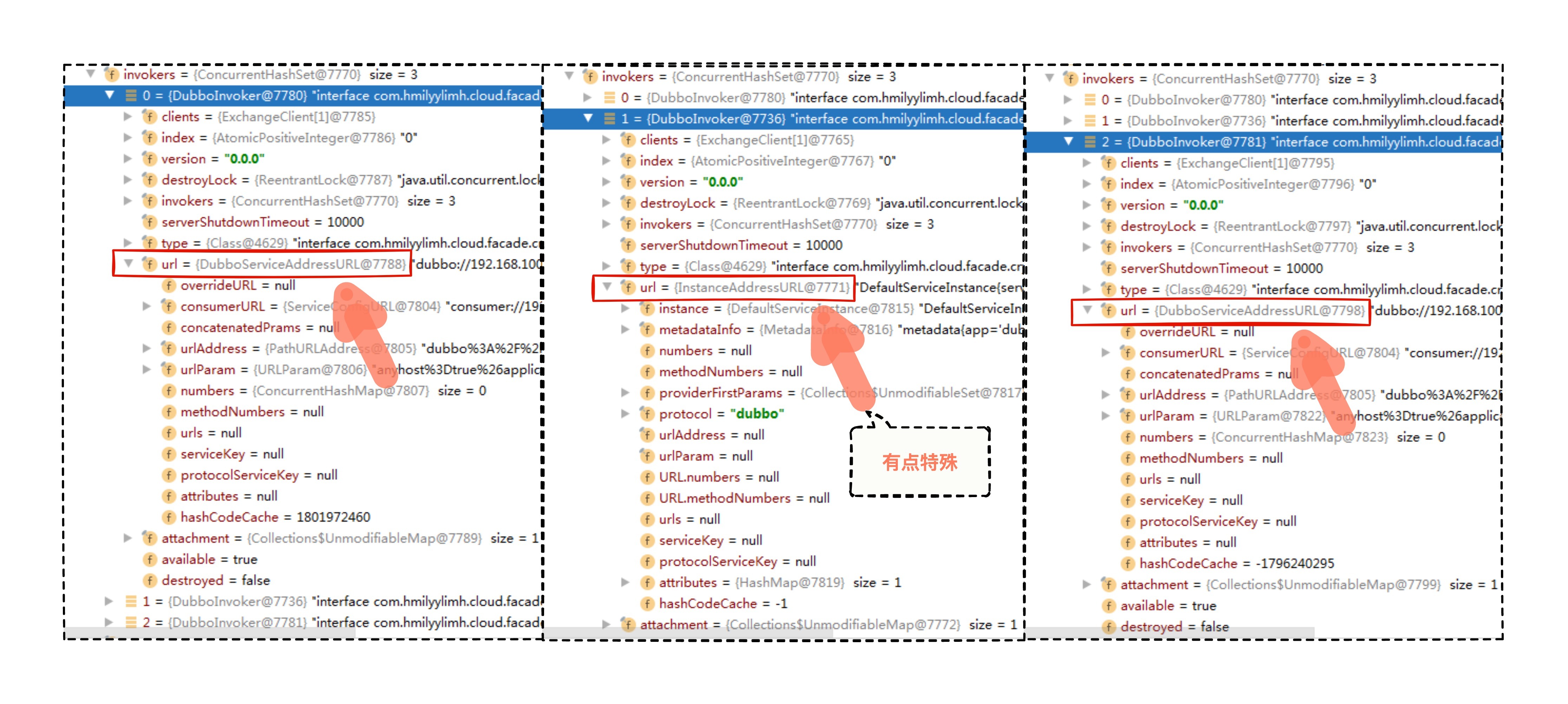 这就好办了,到时候只要从多个 invoker 对象中选出一个具体的 invoker 对象就可以了,至于 IP 标识,我们还是不能直接在 IP 地址内容中添加一些东西,因为一旦添加,源码中好多用到 IP 的地方都得做相应的调整,不可行。那我们干脆在 invoker 中添加一个新字段,通过循环 invoker 对象列表的新字段,貌似也能拿到精准的 invoker 对象。