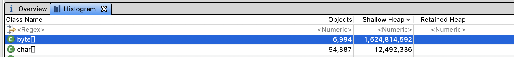 于是,我让运维同学进行生产堆Dump。通过MAT打开dump文件后,我们一眼就看到OOM的原因是,有接近1.7GB的byte数组分配,而JVM进程的最大堆内存我们只配置了2GB: