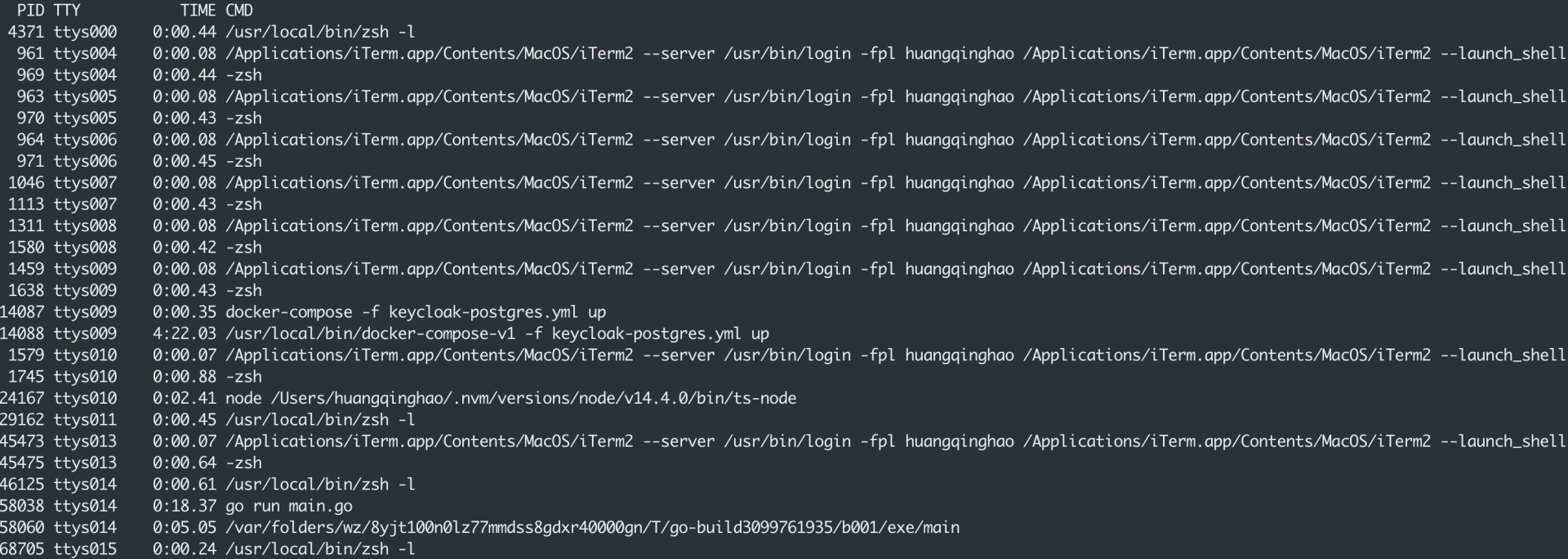 如果你在Linux系统上运行一下ps命令,就可以看到你的计算机当前正在运行的许多进程了:
