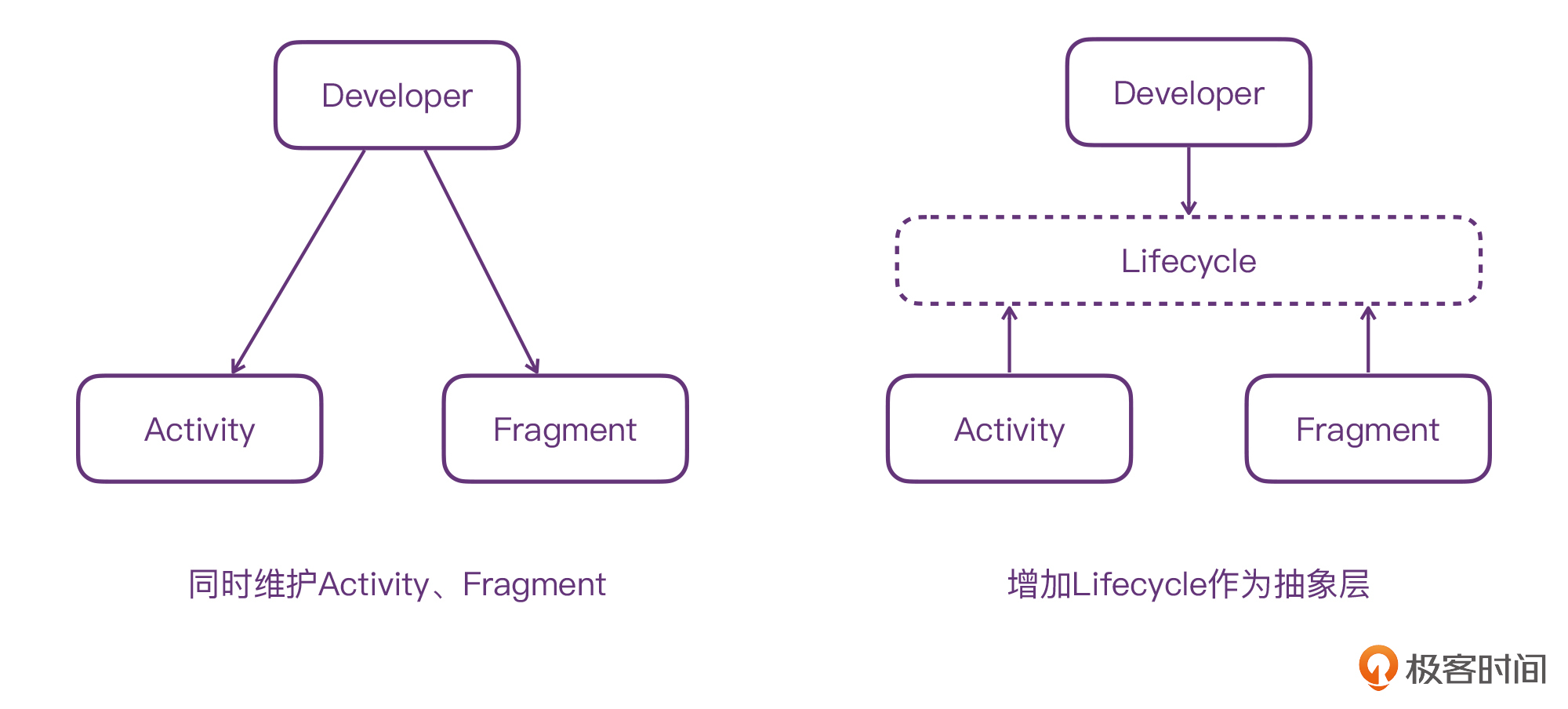 在计算机世界里,大部分问题都可以通过增加一个抽象层来解决。Android团队的做法就是推出了Lifecycle这个架构组件,用它来统一Activity、Fragment的生命周期行为。