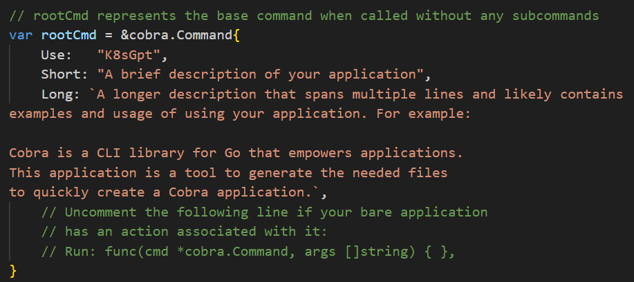 1 | cobra-cli init --author "k8sGpt" --license mit |