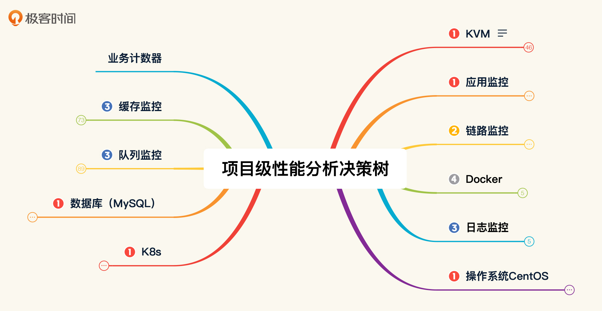 在这里,我要说明一下,我在性能配置树中描述的是一种通用特征,因此无法对每个组件的配置都那么面面俱到。在具体的技术组件中,需要你灵活更改。就以MySQL为例,对于内存,我们通常会考虑innodb_buffer_pool_size;而对于java微服务,我们通常是用JVM来表达。