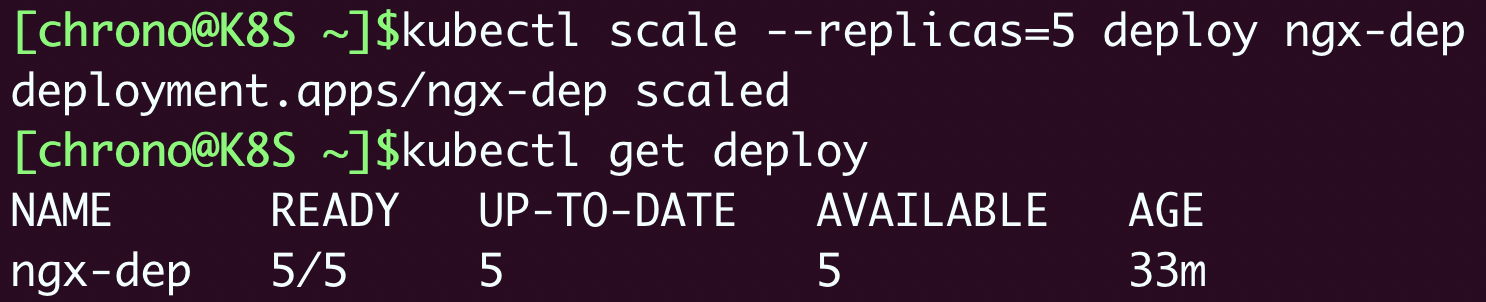 1 | kubectl scale --replicas=5 deploy ngx-dep |