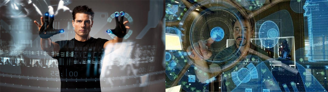 你在很多科幻电影比如《少数派报告》和《钢铁侠》中,都会看到隔空手势的设计。
