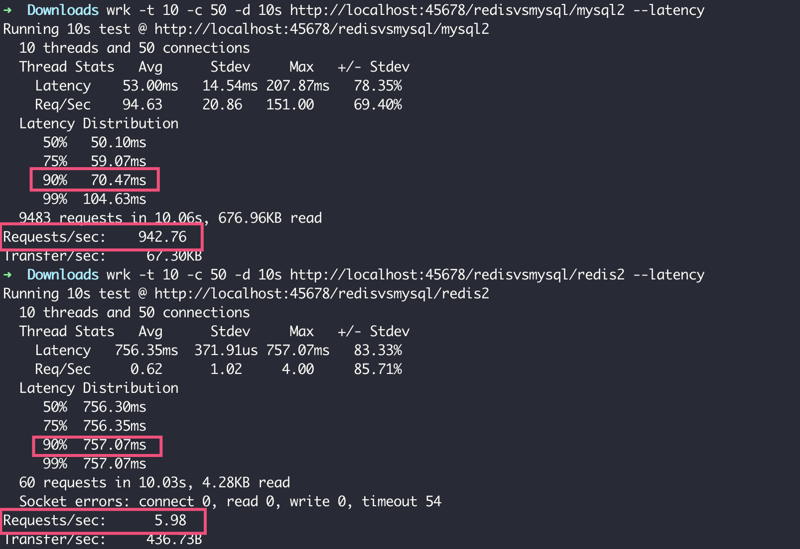@GetMapping("redis2") public void redis2() { Assert.assertTrue(stringRedisTemplate.keys("item71*").size() == 1111); } @GetMapping("mysql2") public void mysql2() { Assert.assertTrue(jdbcTemplate.queryForList("SELECT name FROM `r` WHERE name LIKE 'item71%'", String.class).size() == 1111); }