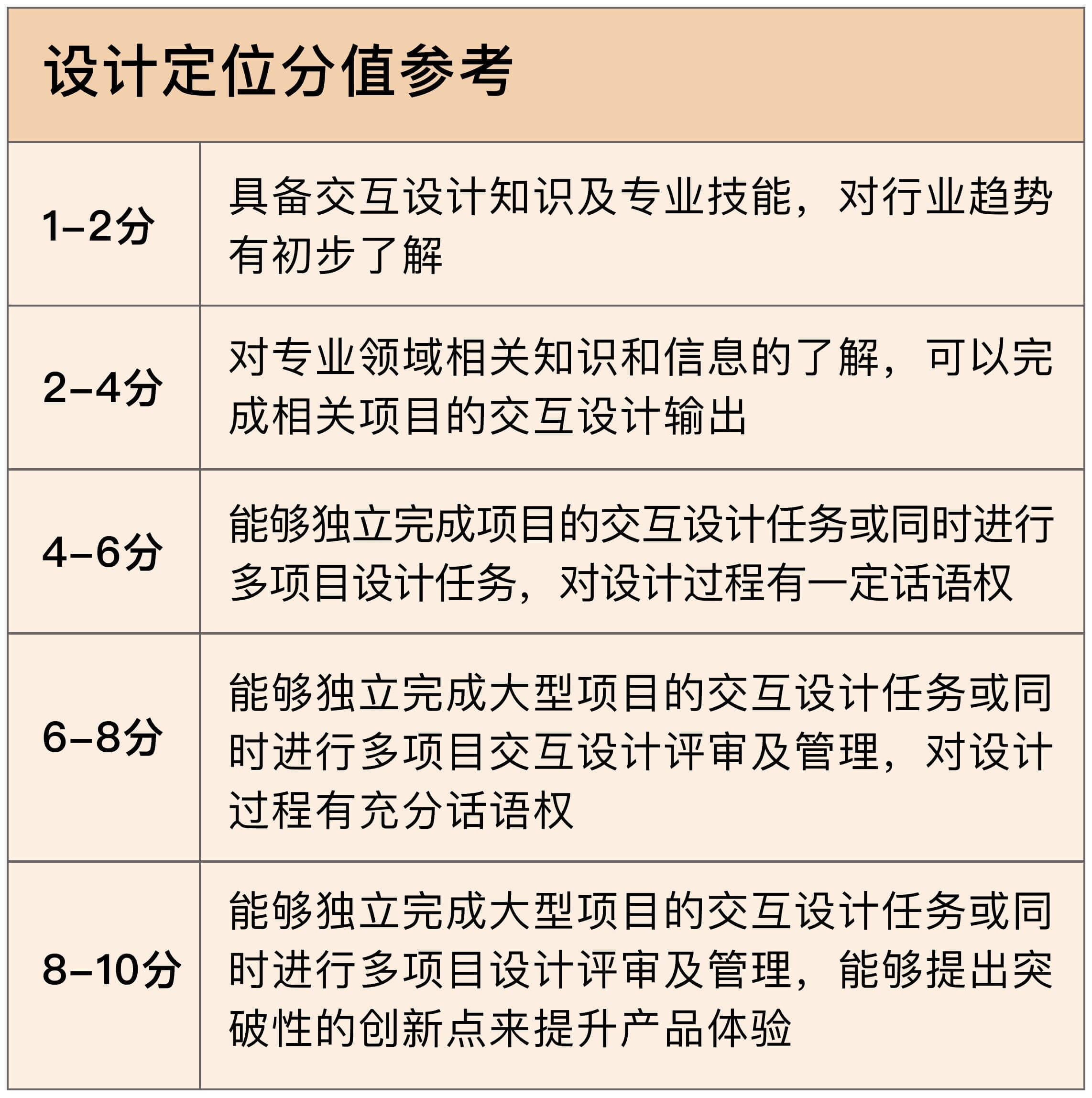 如果我们能用量化的方式,给设计师的能力做个定级,那么我们在面试设计师的时候,我们就会有更多的把握。同时,我们还可以用这种方式,来审视自己身上的能力和不足。