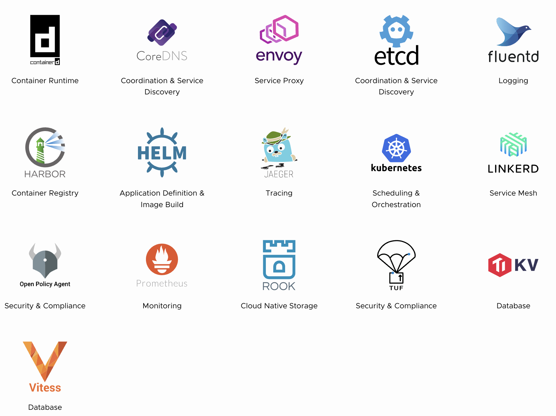 CNCF全景图里的项目非常多,其中由它托管的项目又分成毕业(Graduated)项目、孵化(Incubating)项目和沙盒(Sandbox)项目。