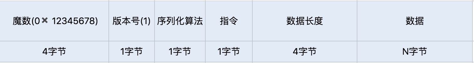 接下来就是实现报文,我们需要设计一套报文,用于描述具体的校验、操作、传输数据等内容。为了提高传输的效率,我们可以根据自己的业务和架构来考虑设计,尽量实现报体小、满足功能、易解析等特性。我们可以参考下面的数据格式: