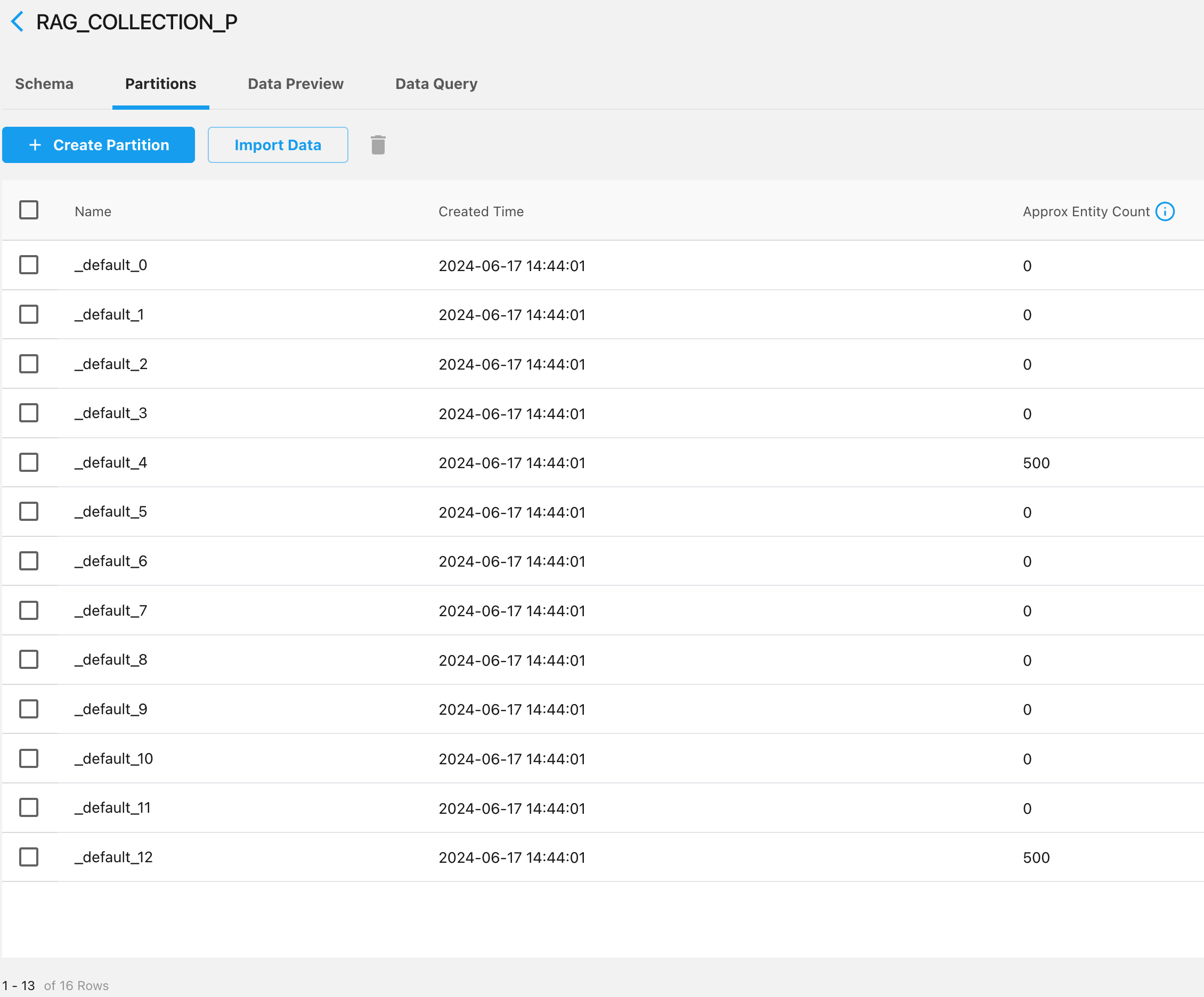 **然后,当你创建一个collection时,Milvus会为这个collection默认创建一个叫做 _default的分区 partitions。**在一个collection下,最多可以创建4096个分区。