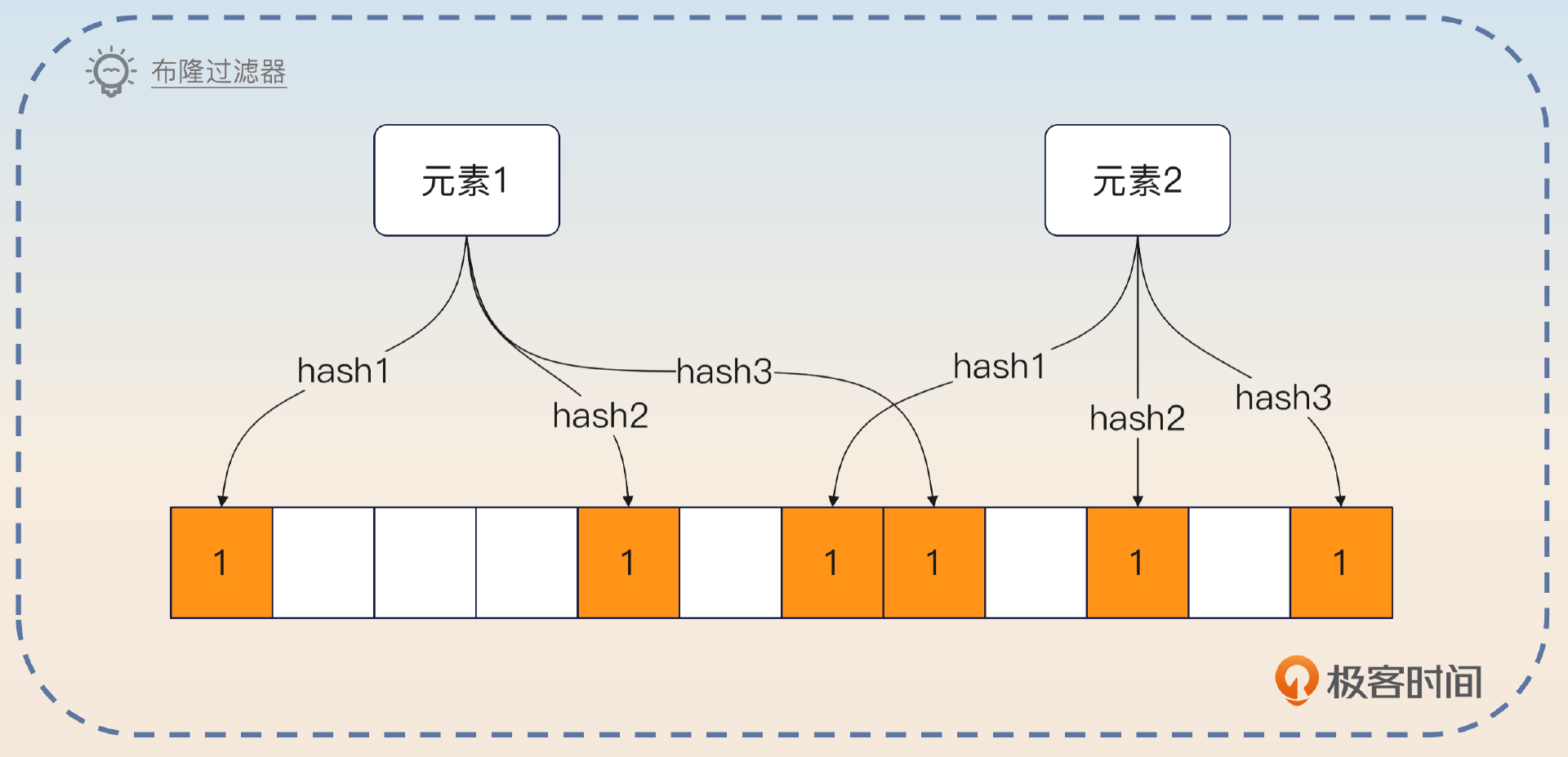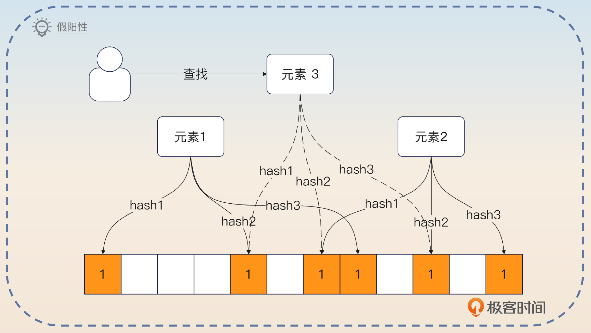 在查找的时候,只需要看对应的比特位是不是 1,就可以粗略判断集合里有没有这个元素。