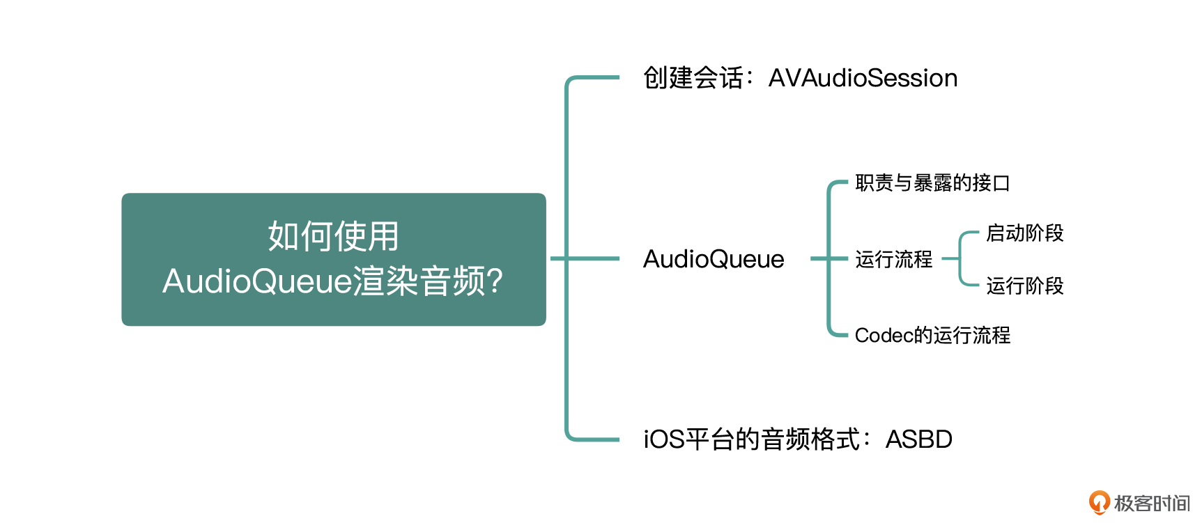 今天我通过代码带你创建并设置了AVAudioSession,还带你详细了解了AudioQueue的运行流程以及iOS平台的音频格式ASBD,希望你学完之后可以自己动手练一练,把今天学习的内容内化到自己的知识网络中。
