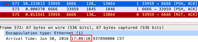 我们最后再确认一下时间戳。这个隔了58秒才发出的心跳包,发送的时间是在17:08:10: