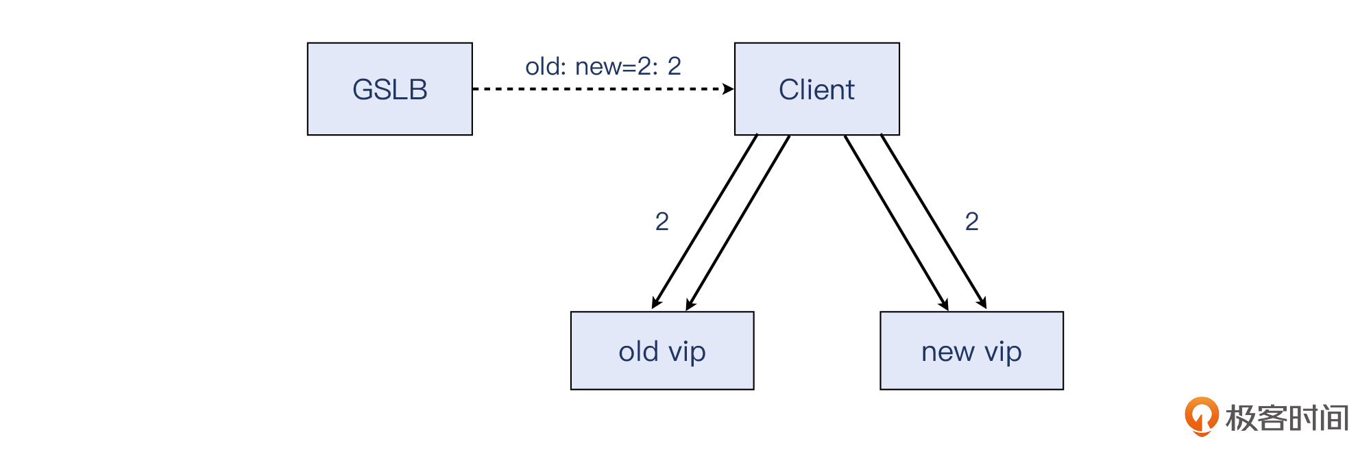 具体来说,我们在新老两个VIP之间迁移流量,用的是名称解析(基于DNS/GSLB)的返回值的比例,来控制真实的HTTP流量比例,这就可以逐步从新老比例为1:99,到50:50,最后到100:0也就是全部到新VIP。