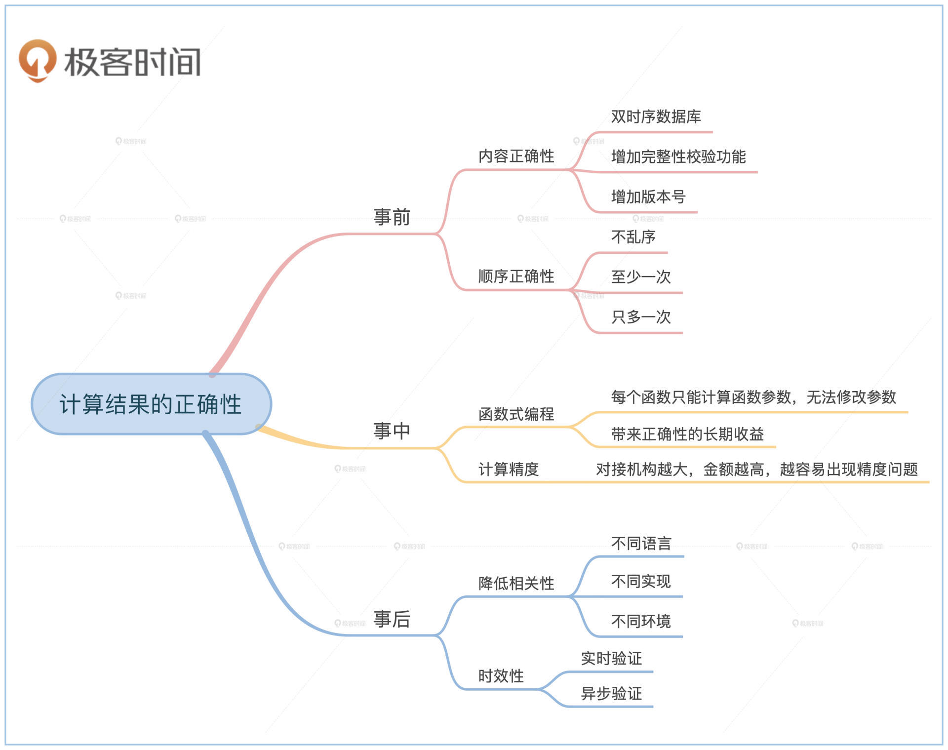 这节课我们从事前、事中和事后三个部分学习了如何保证整体计算结果的正确性。