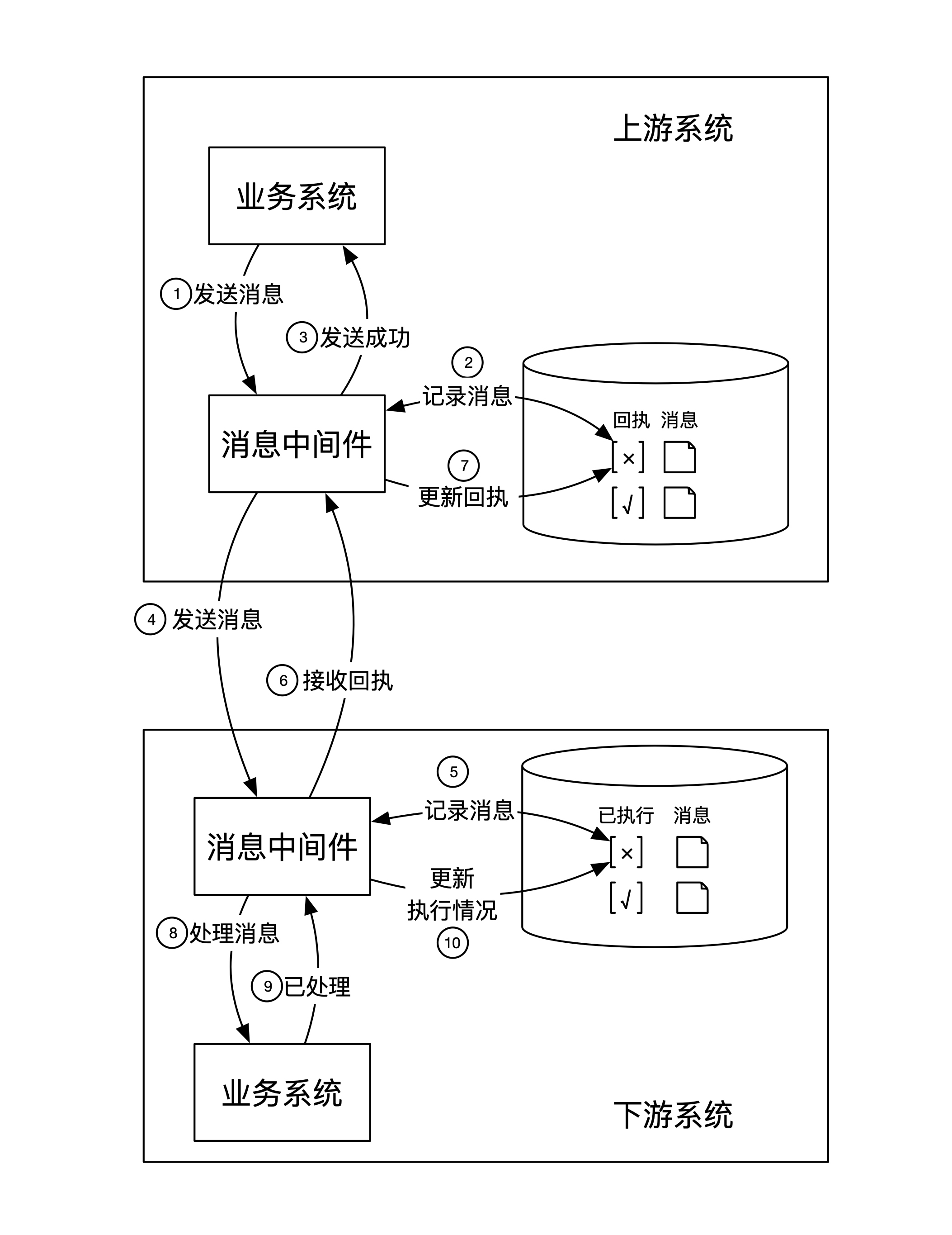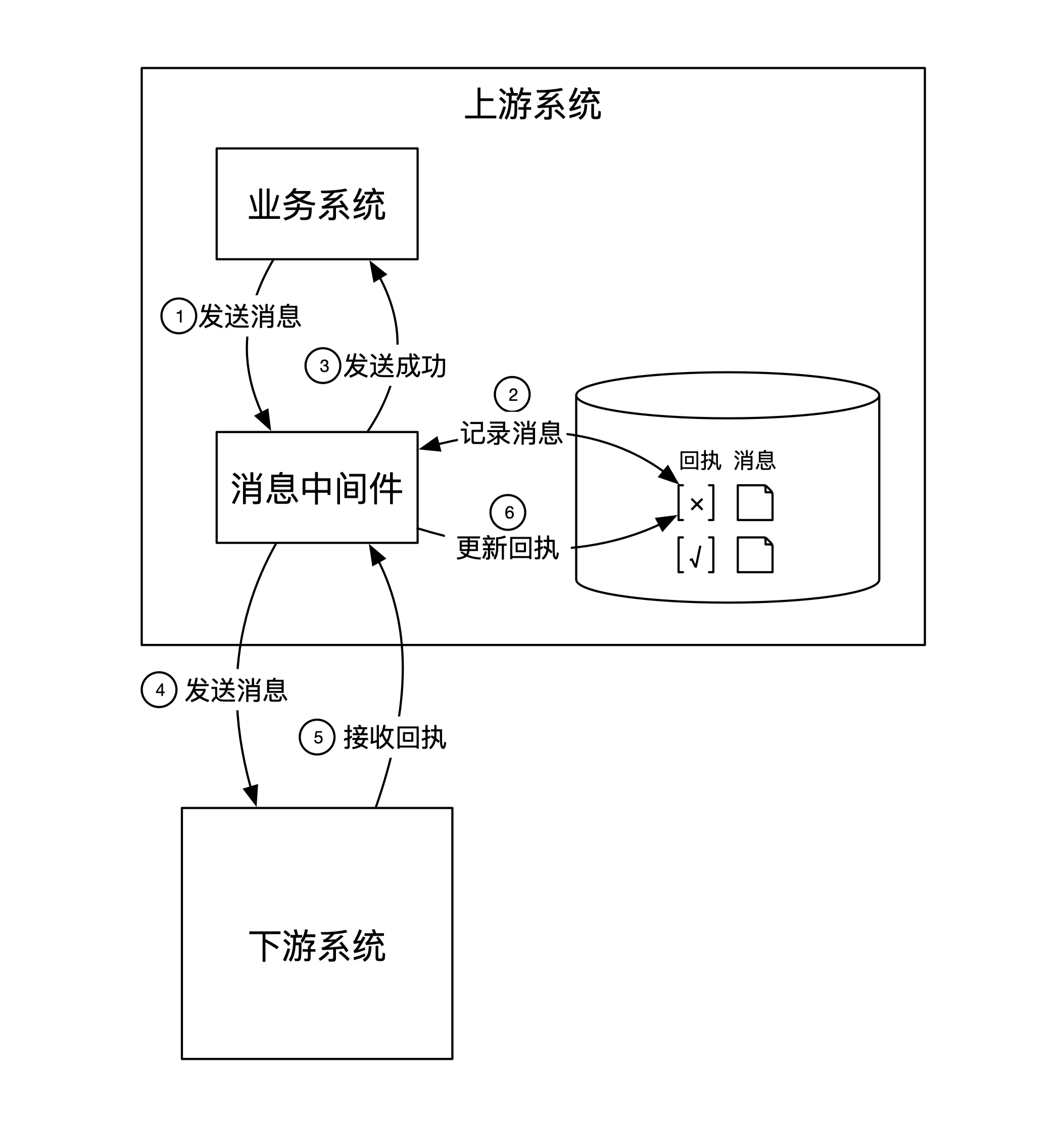 3.消息中间件发送回执给上游系统。