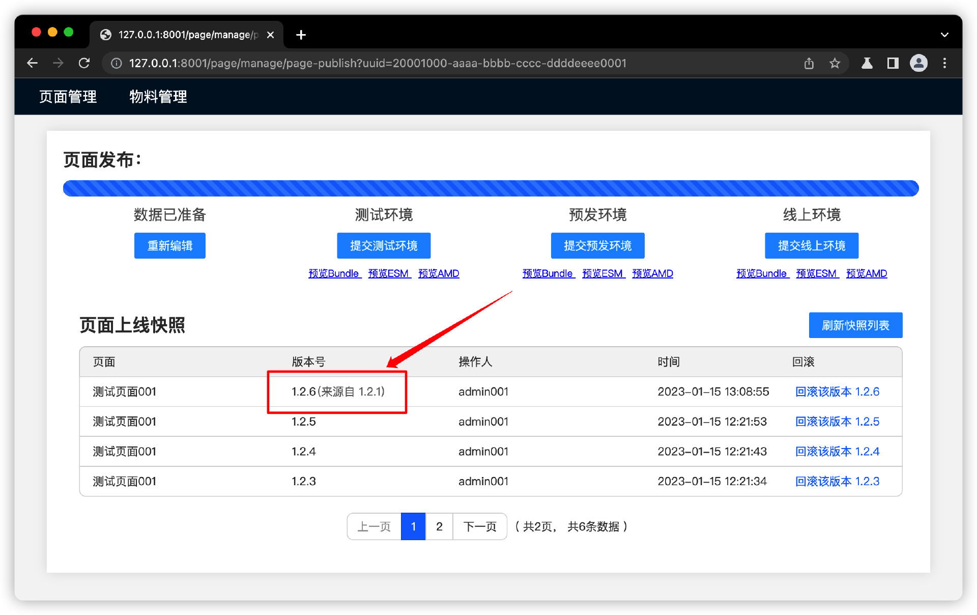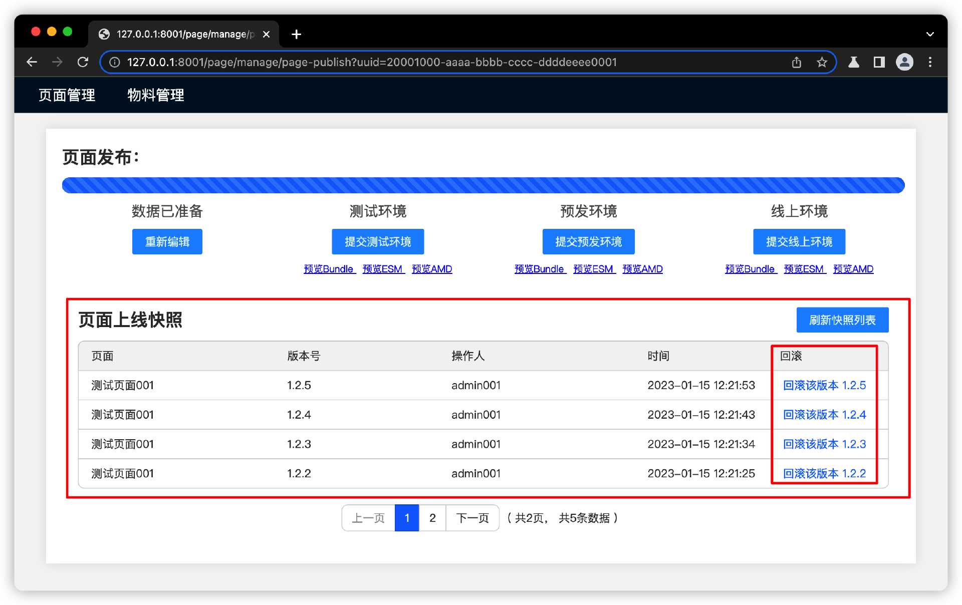 我们把页面版本管理和发布流程聚合在一个页面上,基于快照数据,来管理页面版本数据和版本Bundle文件。