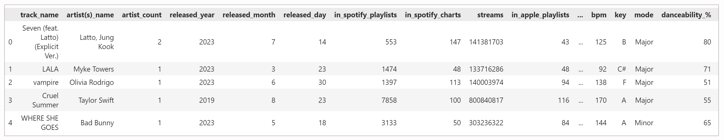 数据集包含了曲目名称、艺术家、发布年份、流媒体播放量等有价值的信息。